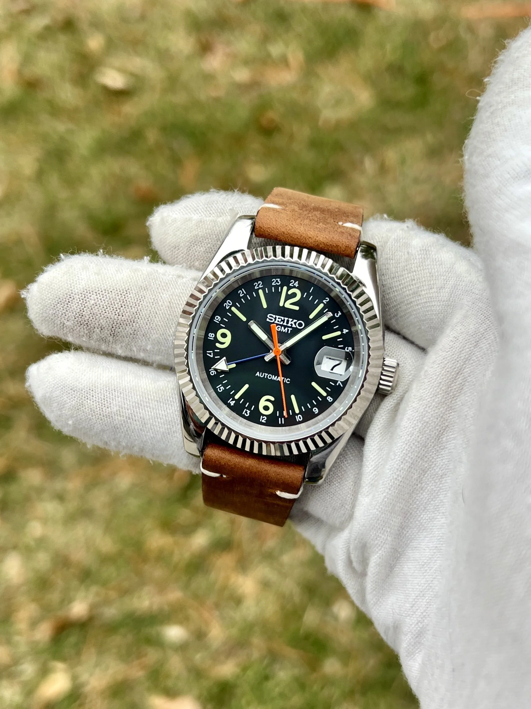 This is a one off build because the seconds hand and dial are currently discontinued and hard to find.